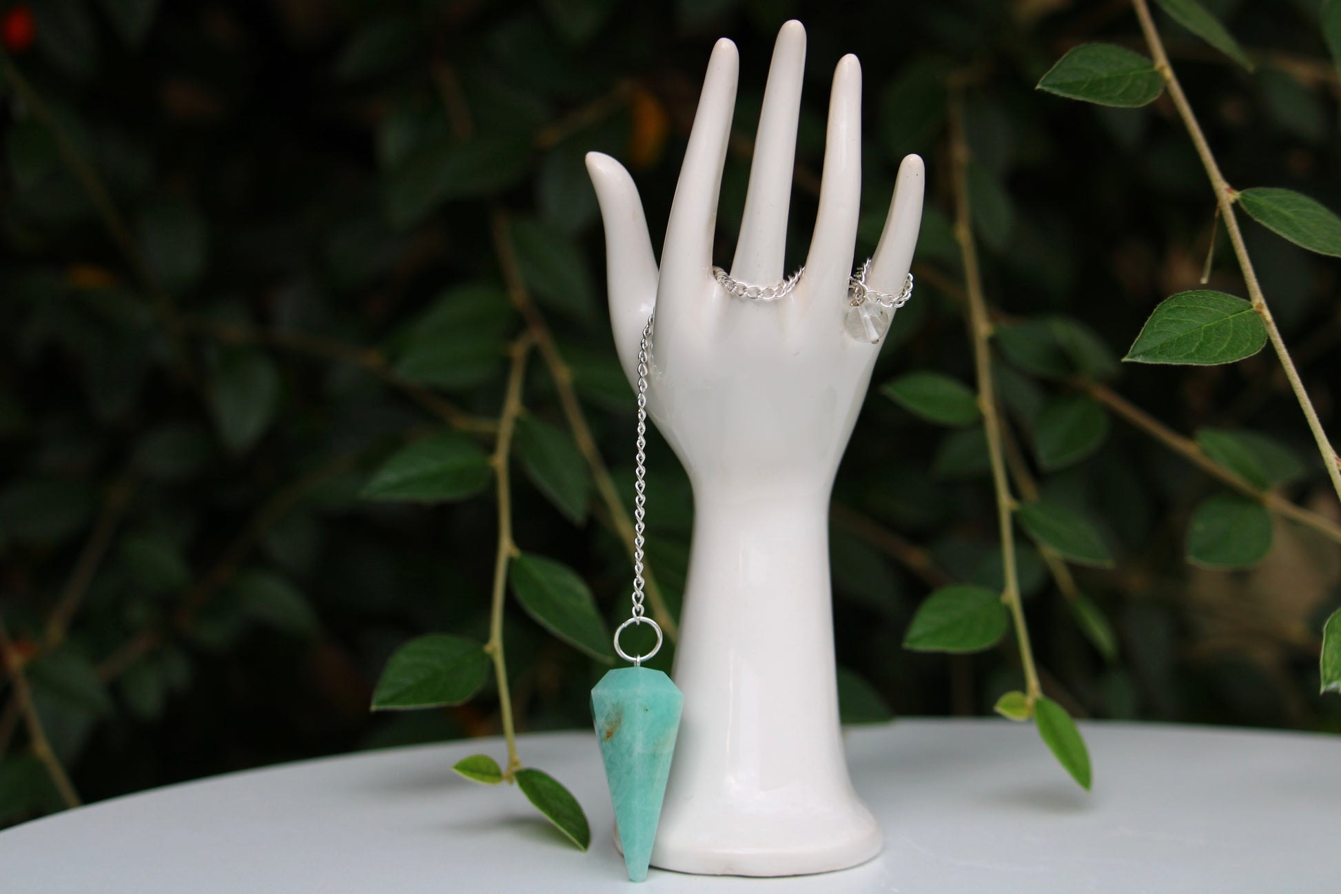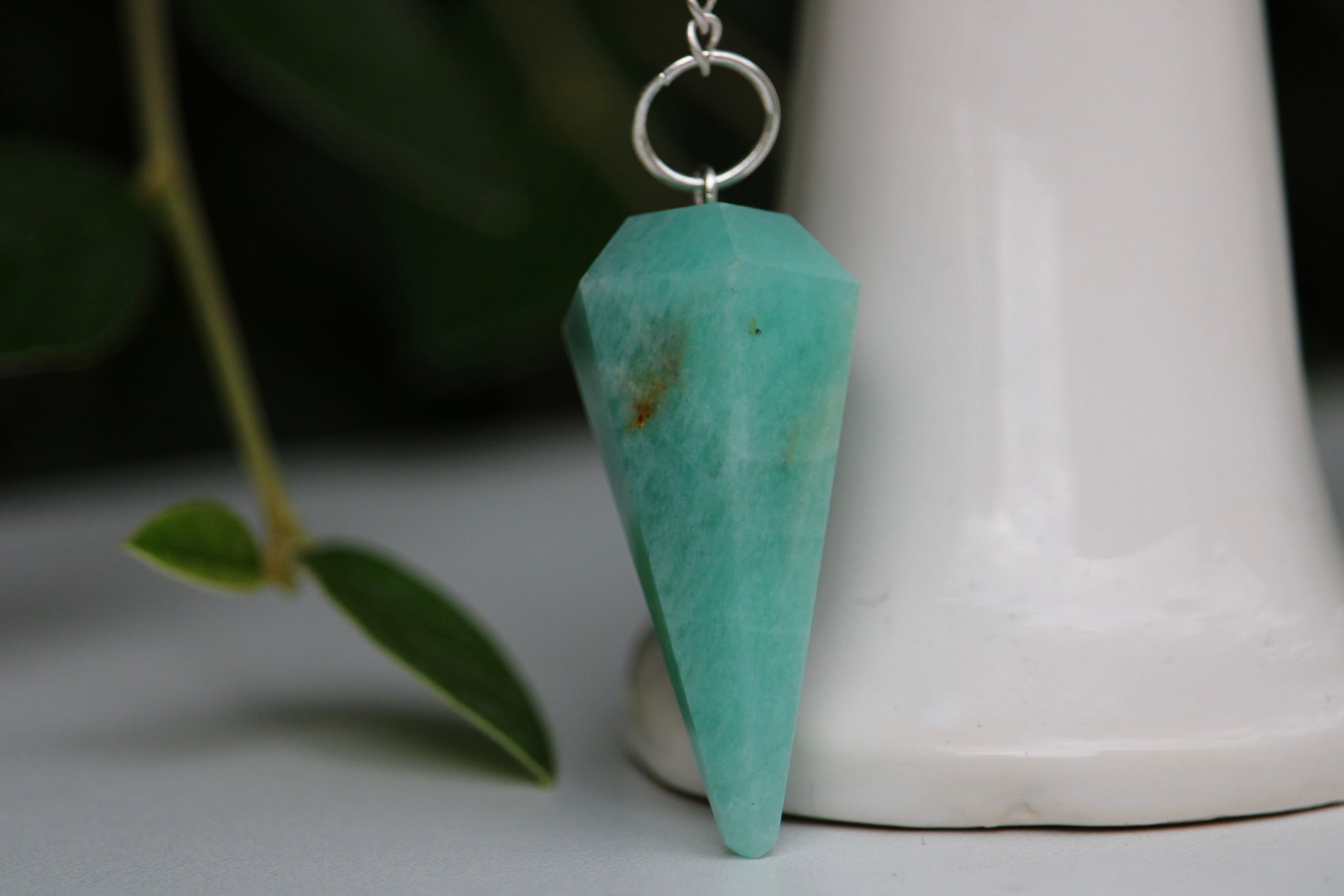 Pour votre radiesthésie, optez pour un pendule en pierre d'Amazonite. Cette pierre est reconnue pour sa douceur, elle permet l'apaisement des sentiments de frustrations. Parfait pour travailler sur le chakra du coeur.